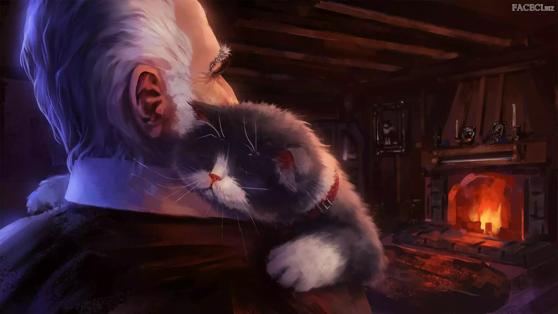 Mężczyzna, Kominek, Grafika, Kot - faceci.biz